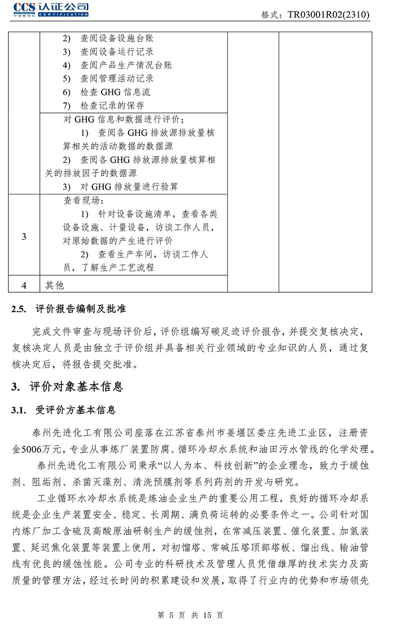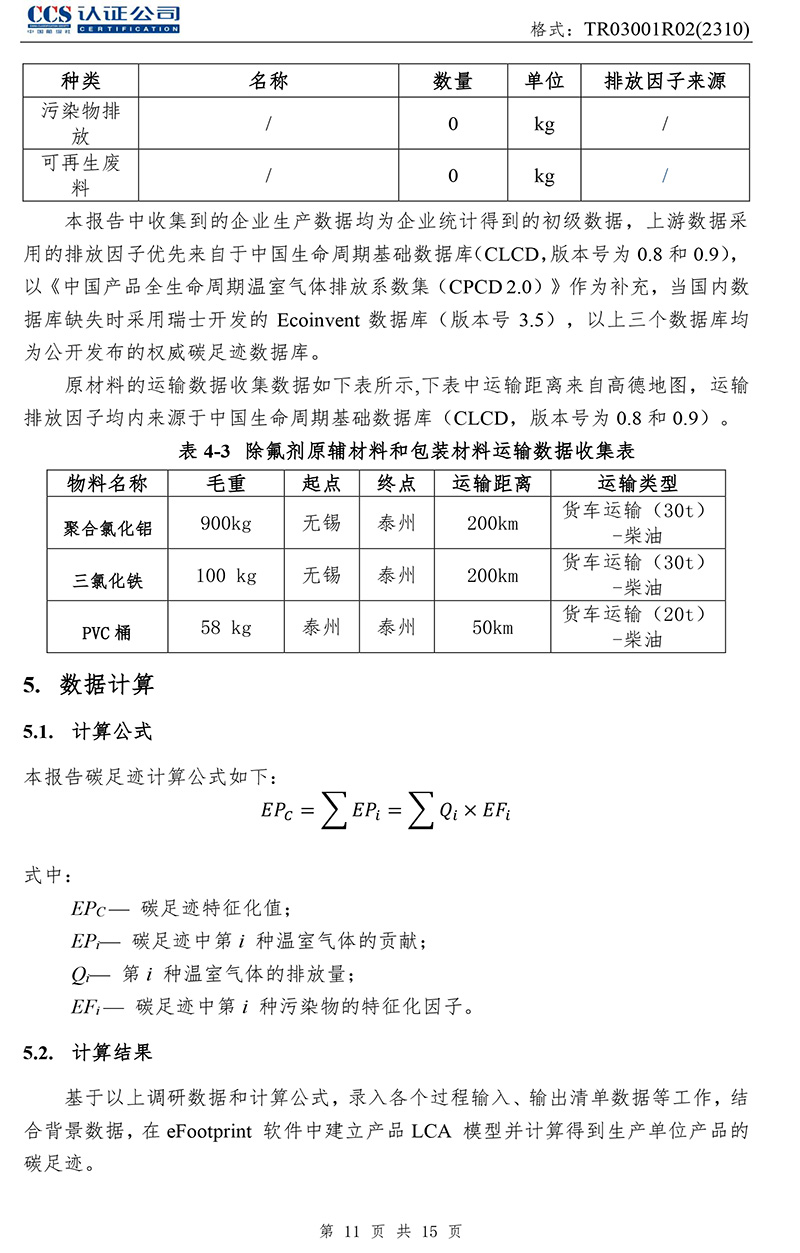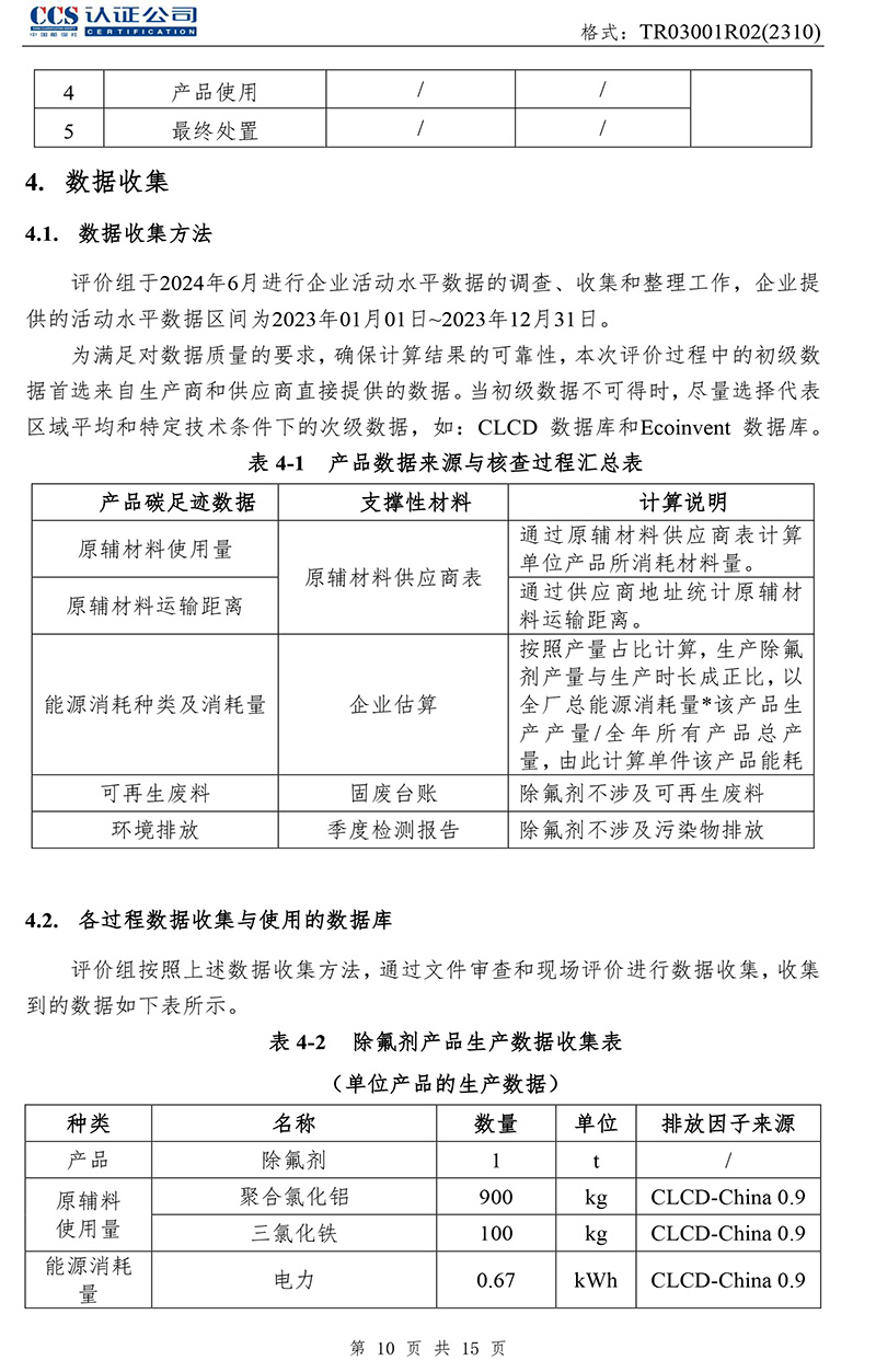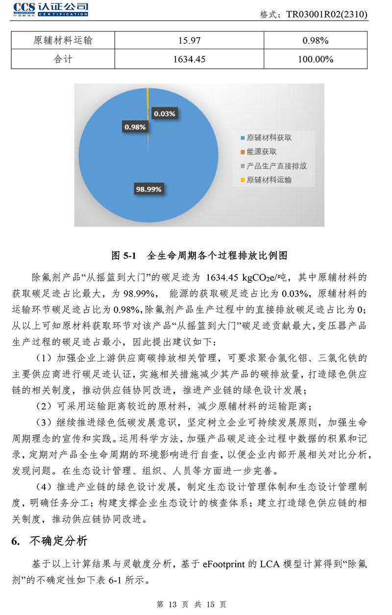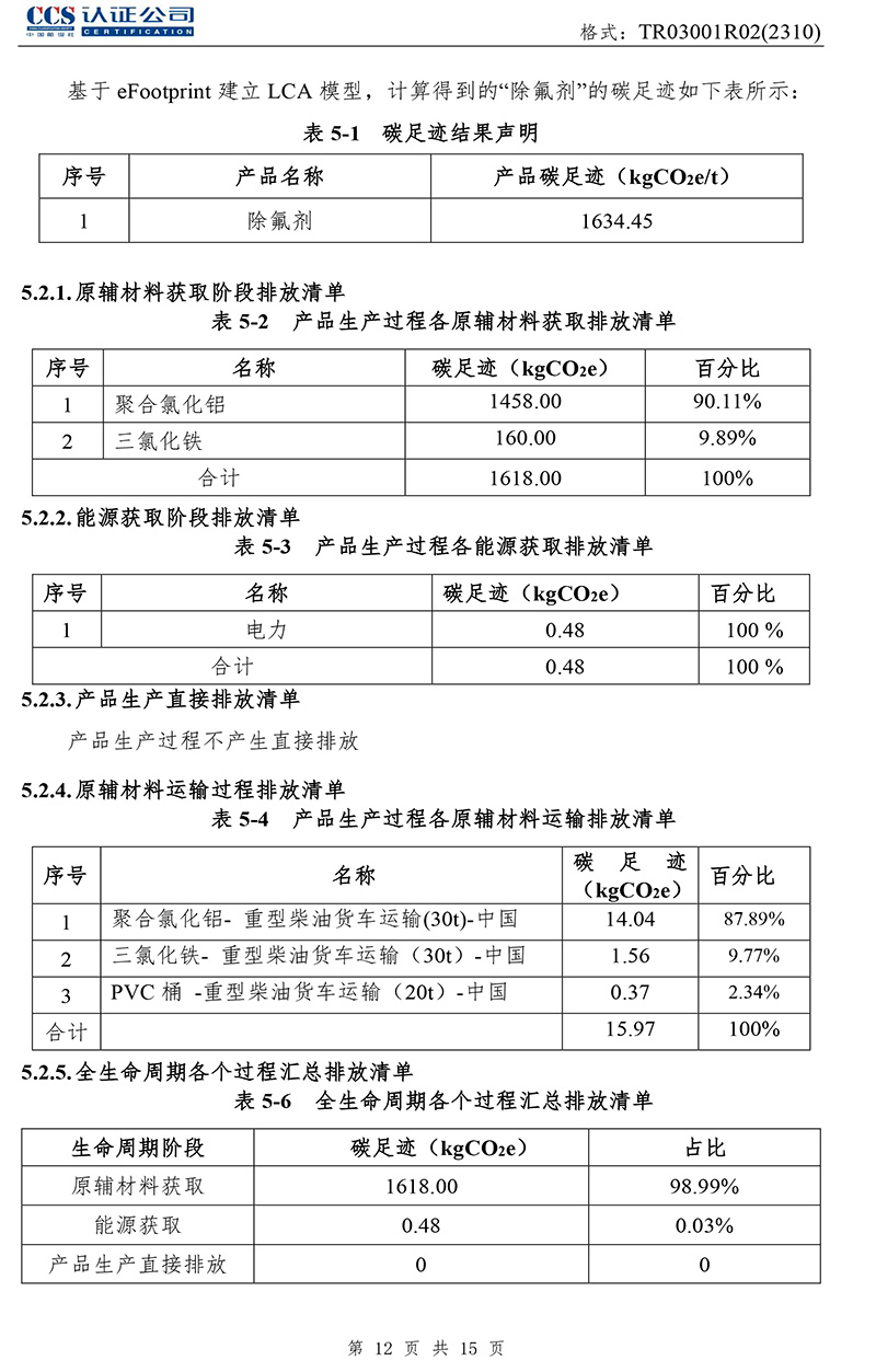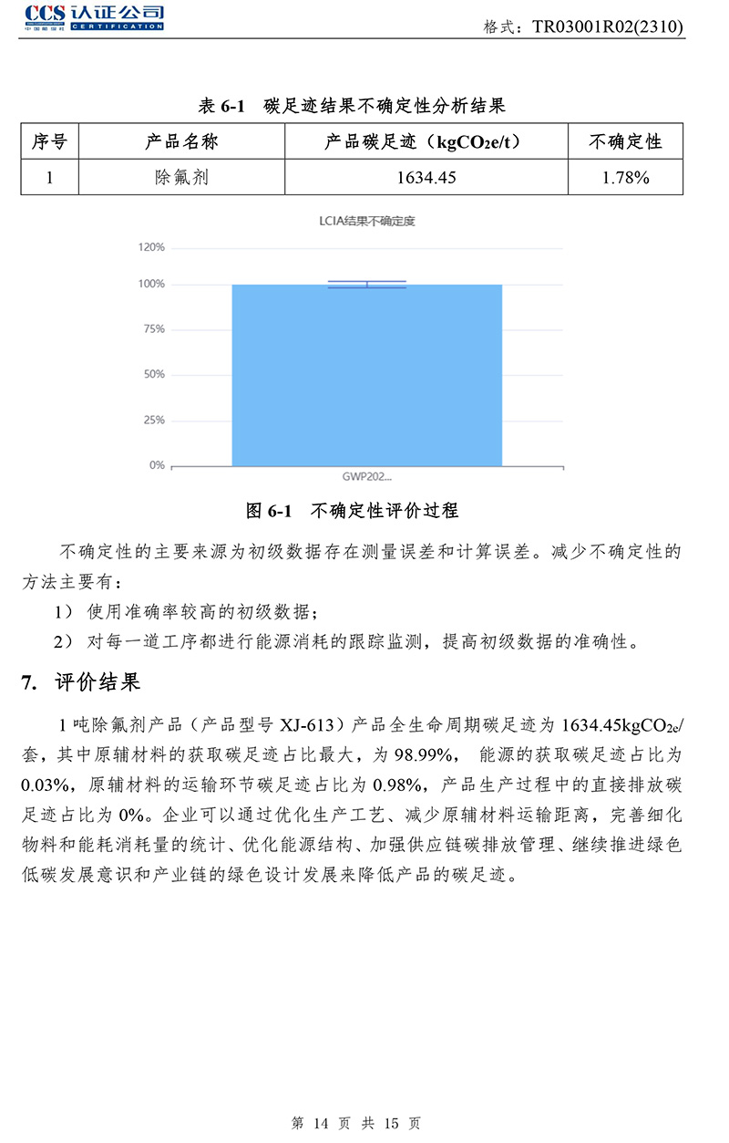 泰州先進(jìn)化工除氟劑產(chǎn)品碳足跡報(bào)告